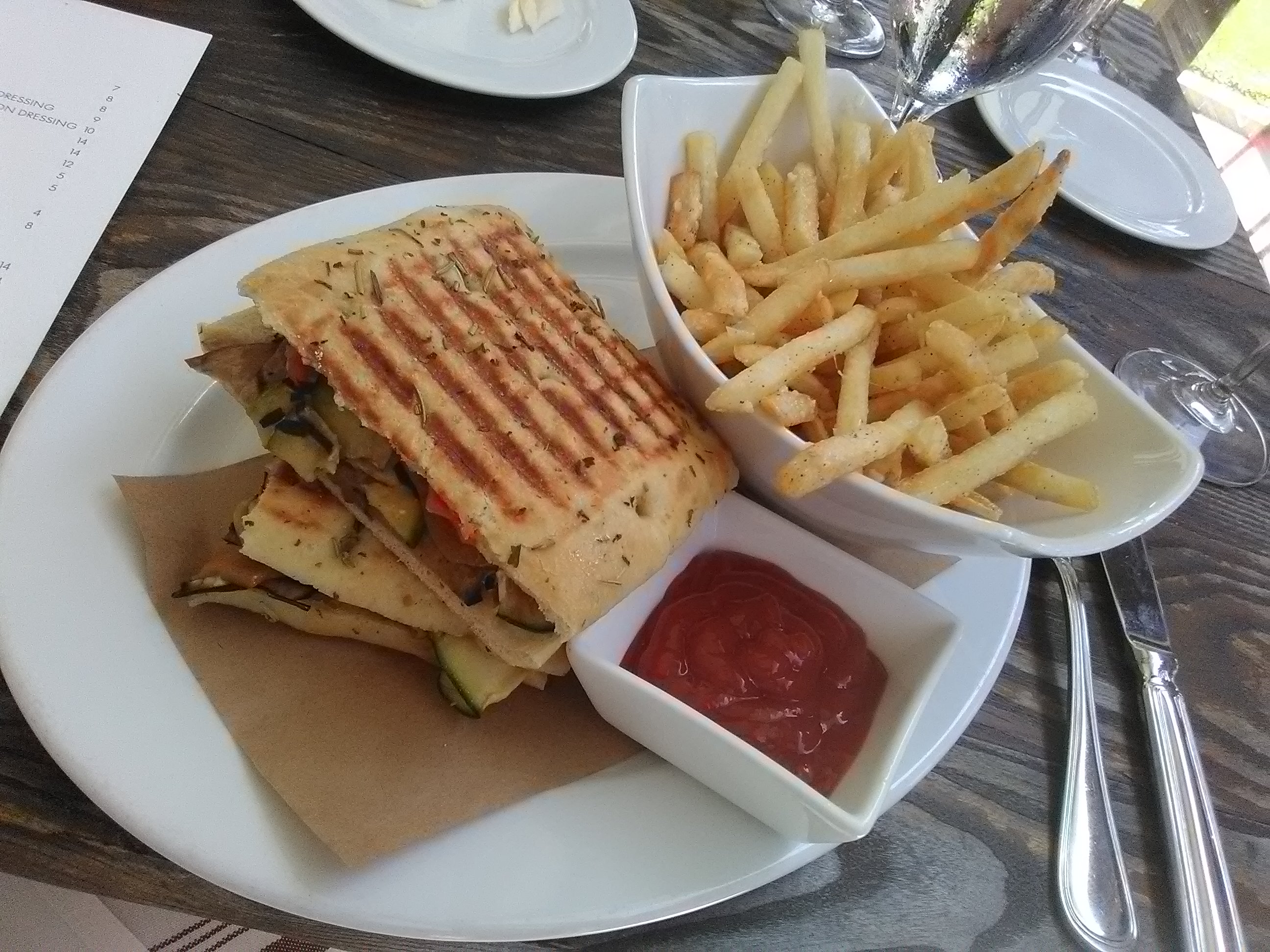 I moved on to the goat cheese panini which was dressed with greens and mushrooms. Really delicious. I shy away from paninis because too many of them are excessively bready. The Roc panini has a good proportion of protein and greens to starch.